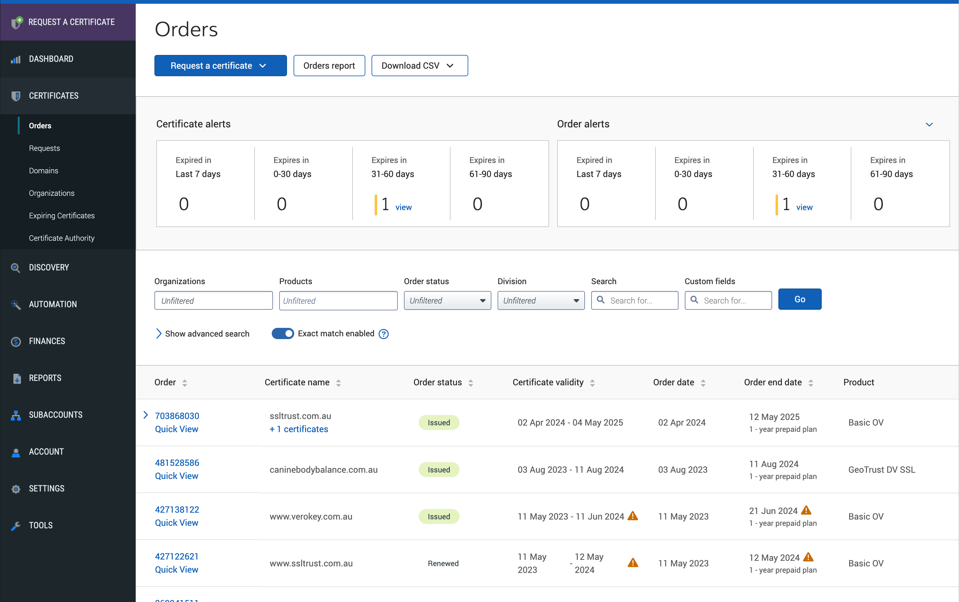 • Track everything: Automatically monitor expiration dates and track all your certificates across every domain, so nothing gets missed.